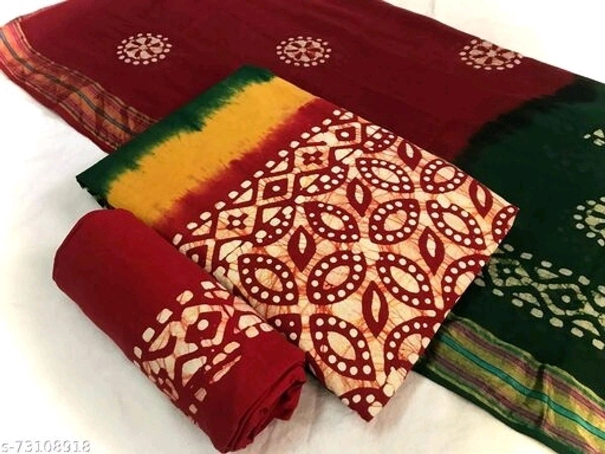 Pure Cottton Original Wax Batik Suits & Dress Material Name: Pure Cottton Original Wax Batik Suits & Dress Material Top Fabric: Cotton + Top Length: 2.5 Meters Bottom Fabric: Cotton + Bottom Length: 2 Meters Dupatta Fabric: Cotton + Dupatta Length: 2.25 Meters Lining Fabric: Cotton Type: Un Stitched Pattern: Printed Multipack: Single Original Wax Batik Suits - Top: 2.5 Mtr, Bottom: 2.0 Mtr, Dupatta: 2.25 Mtr - 100 % Cotton Material Country of Origin: India free delivery return policy 6 days