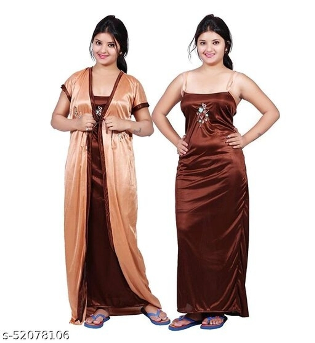Qunity Women's Satin Full-Length Nighty/Night Wear/Sleep Wear/Night Gown, Free Size (Cream & Brown) Name: Qunity Women's Satin Full-Length Nighty/Night Wear/Sleep Wear/Night Gown, Free Size (Cream & Brown) Fabric: Satin Sleeve Length: Short Sleeves Pattern: Solid Multipack: 2 Sizes: Free Size Qunity Night Wear Collection Fuses Style with Comfort Making It A Perfect Choice. This is comfortable and ladies nighty to your wardrobe . Make sure to have a relaxing and peaceful sleep.Night Suits and Night Wears are as important as comfortable sleeping at night. We mainly focuses on quality of fabric. Our range of Night Suits and Night wears must be a part of your wardrobe. Grab it and feel the comfort which you deserve after the long day. Very comfortable to wear. Fancy Nightwear . WASH CARE :Warm wash, do not bleach, low iron, do not dry clean, do not tumble dry, wash dark colours separately . Country of Origin: India