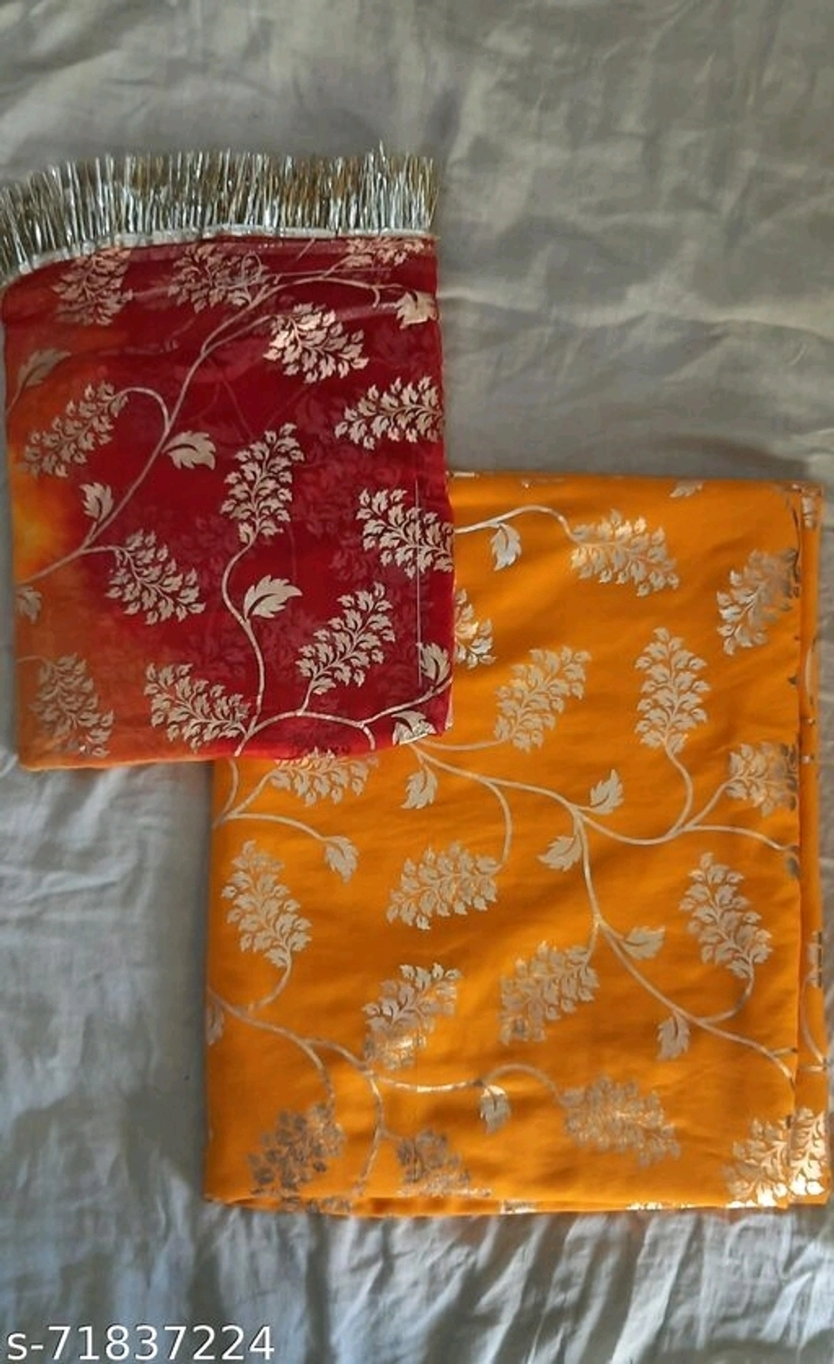 RAJPUTI SUITS Name: RAJPUTI SUITS Top Fabric: Satin Silk Bottom Fabric: Satin Silk Dupatta Fabric: Satin Lining Fabric: No Lining Type: Un Stitched Multipack: Single Rajputi satin 4 meter suit with hamrahi printed gotta turi odna free delivery return policy 6 days