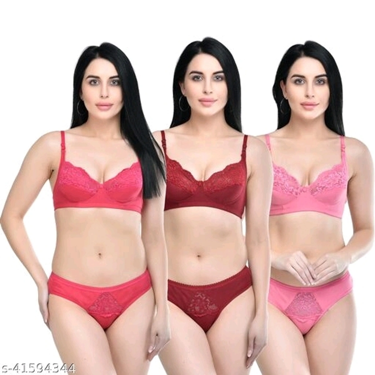 RV Fancy Shama Lingerie Set (Pack of 3) Name: RV Fancy Shama Lingerie Set (Pack of 3) Fabric: Polycotton Print or Pattern Type: Self-Design Padding: Non Padded Type: Balconette Seam Style: Seamed Multipack: 3 Sizes: 34B (Underbust Size: 32 in, Overbust Size: 34 in) 32B (Underbust Size: 30 in, Overbust Size: 32 in) 30B (Underbust Size: 28 in, Overbust Size: 30 in) 40B (Underbust Size: 38 in, Overbust Size: 40 in) 38B (Underbust Size: 36 in, Overbust Size: 38 in) 36B (Underbust Size: 34 in, Overbust Size: 36 in) Fancy Bra, Stylish Bra, Full Coverage, Non Padded, Back Closure Bra, Regular, Inner Side Net, Poly Cotton, Western Wear, Seamed, Handwash, Comfortable and adjustable Country of Origin: India free and fast delivery return policy 6 days