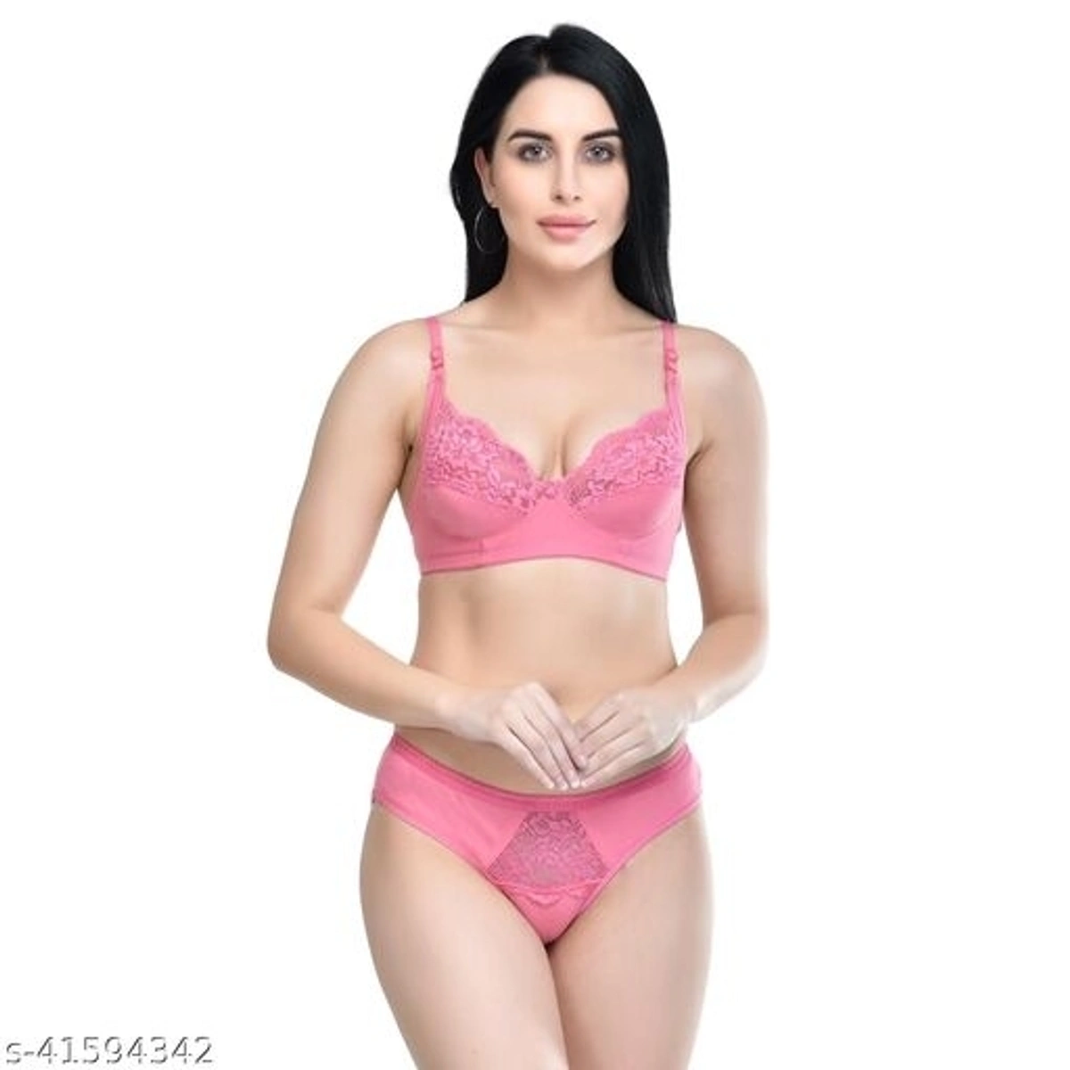 RV Fancy Shama Lingerie Set Pink Name: RV Fancy Shama Lingerie Set Pink Fabric: Polycotton Print or Pattern Type: Self-Design Padding: Non Padded Type: Balconette Seam Style: Seamed Multipack: 1 Sizes: 34B (Underbust Size: 32 in, Overbust Size: 34 in) 32B (Underbust Size: 30 in, Overbust Size: 32 in) 30B (Underbust Size: 28 in, Overbust Size: 30 in) 40B (Underbust Size: 38 in, Overbust Size: 40 in) 38B (Underbust Size: 36 in, Overbust Size: 38 in) 36B (Underbust Size: 34 in, Overbust Size: 36 in) Fancy Bra, Stylish Bra, Full Coverage, Non Padded, Back Closure Bra, Regular, Inner Side Net, Poly Cotton, Western Wear, Seamed, Handwash, Comfortable and adjustable Country of Origin: India free and fast delivery return policy 6 days