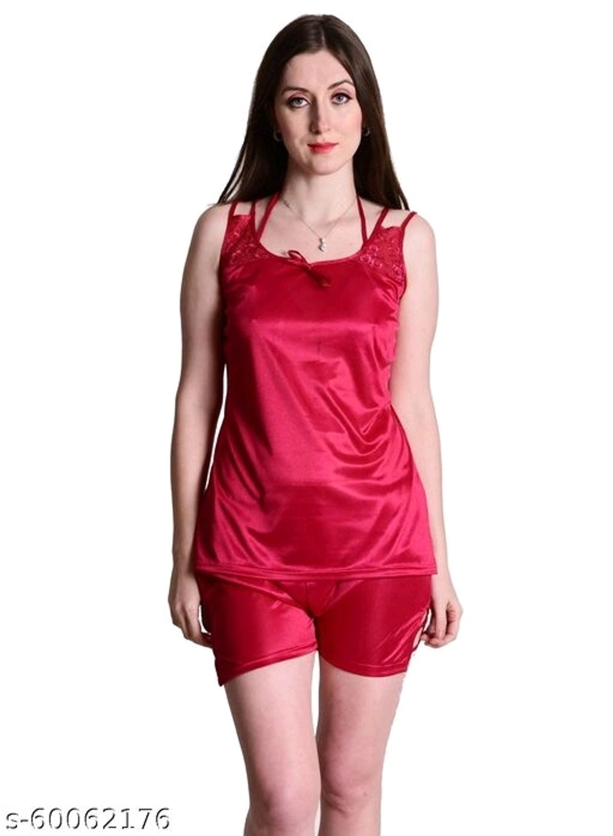 Senslife® Women's Nightsuit Red Satin Nightwear Top & Shorts Set Name: Senslife® Women's Nightsuit Red Satin Nightwear Top & Shorts Set Top Fabric: Satin Bottom Fabric: Satin Top Type: Regular Top Bottom Type: Shorts Sleeve Length: Sleeveless Pattern: Solid Multipack: 1 Sizes: Free Size (Top Bust Size: 28 in, Top Length Size: 26 in, Bottom Waist Size: 32 in, Bottom Length Size: 28 in) L (Top Bust Size: 28 in, Top Length Size: 26 in, Bottom Waist Size: 32 in, Bottom Length Size: 28 in) M (Top Bust Size: 28 in, Top Length Size: 26 in, Bottom Waist Size: 32 in, Bottom Length Size: 28 in) Senslife® Red Satin Nightwear Top & Shorts Set All Sizes Are Available : Size: M, Bust: 30-34, Waist: 28-32 Fabric: Satin Size: L, Bust: 32-36, Waist: 28-32 Fabric: Satin Size : XL, Bust : 34-38, Waist : 32-34 Fabric : Satin Size: FREE SIZE. One Size Fits Most. Size range: Bust (28 to 36 inches), Waist (28 to 34 inches) Look stunning and sensual at the same time with this classy nightdress. Perfect for: Bedroom, Special nights, Nightwear Country of Origin: India