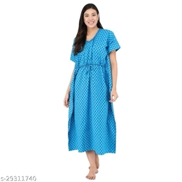 Name: Shararat Women's Printed Cotton Kaftan Nighty | Kaftan Nightwear Night Gown for Women | Night Dress for women Blue