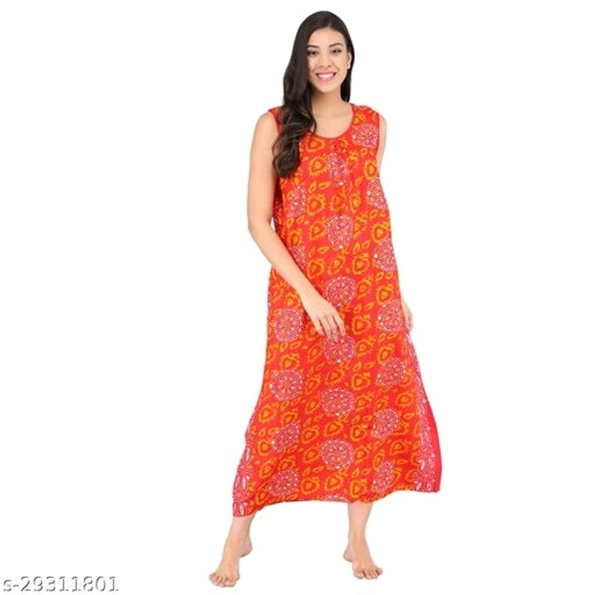 Shararat Women's Sleeveless Cotton Floral Maxi/Nighty/Night dress|Nightwear for Womens Name: Shararat Women's Sleeveless Cotton Floral Maxi/Nighty/Night dress|Nightwear for Womens Fabric: Cotton Sleeve Length: Sleeveless Pattern: Printed Multipack: 1 Add ons: Top "Sizes: M (Bust Size - 38 in , Length Size - 53) L (Bust Size - 40 in , Length Size - 53) XL (Bust Size - 42 in , Length Size - 53) XXL (Bust Size - 44 in , Length Size - 53) XXXL (Bust Size - 46 in , Length Size - 53) Free Size (Free Size, Length Size - 53)" Shararat new range of nightwear will perfectly complement your sense of style.Cotton nightwear is the most popular choice for nightwear among-st people of all generations. Not only is the cotton fabric breathable, but it is also extremely durable. A cotton nightwear is the best choice for you as it is non-allergenic and allows the skin to breathe. Country of Origin: India