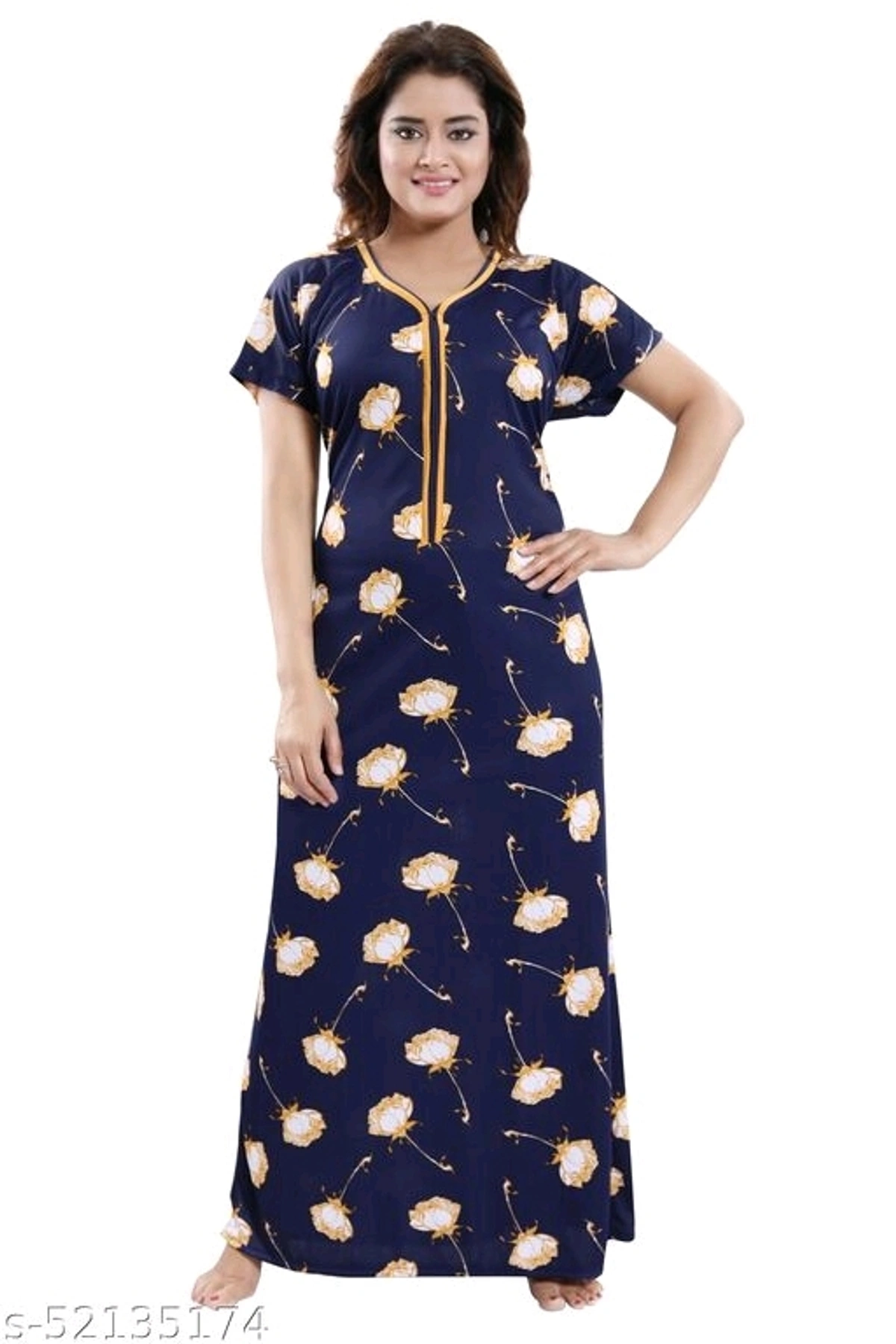 Shopping Station Women's Nighty Name: Shopping Station Women's Nighty Fabric: Satin Sleeve Length: Short Sleeves Pattern: Printed Multipack: 1 Sizes: Free Size (Length Size: 55 in) Country of Origin: India