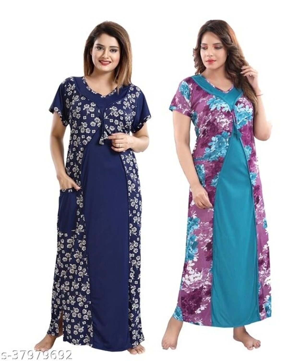 Shopping Station Women's Nightdress Name: Shopping Station Women's Nightdress Fabric: Satin Sleeve Length: Short Sleeves Pattern: Printed Multipack: 2 Sizes: Free Size (Length Size: 55 in) Country of Origin: India