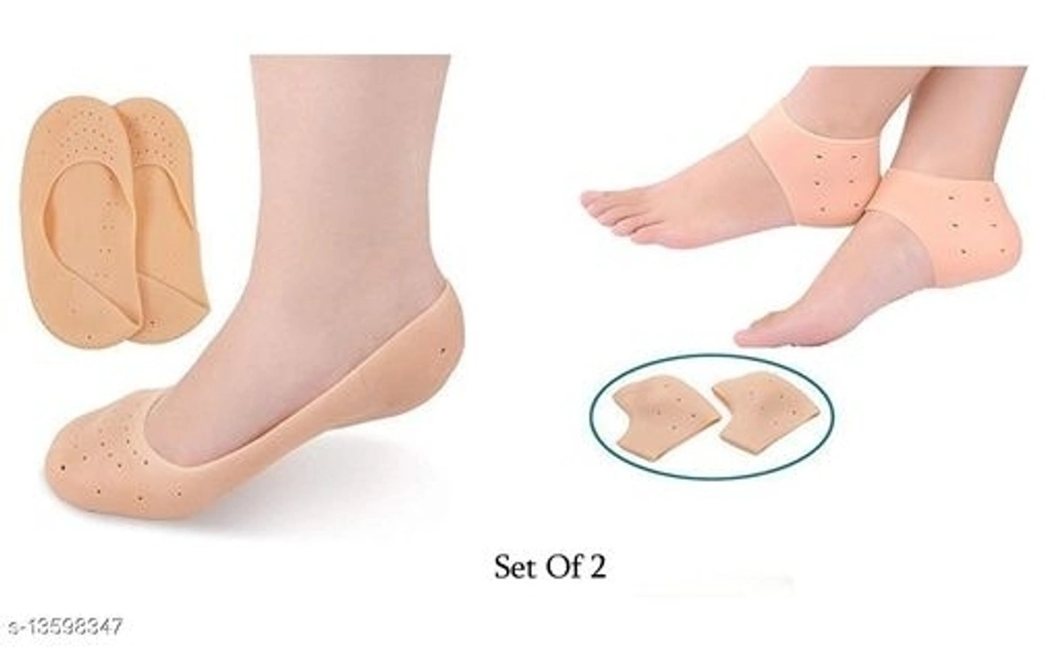 Silicone Anti Heel Crack Half Socks with Smiling Foot Full Socks Foot Support (Set of Two)