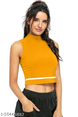 Name: Sleeveless Casual Striped Peach Polyester Blend Crop Top (18"Inches)
