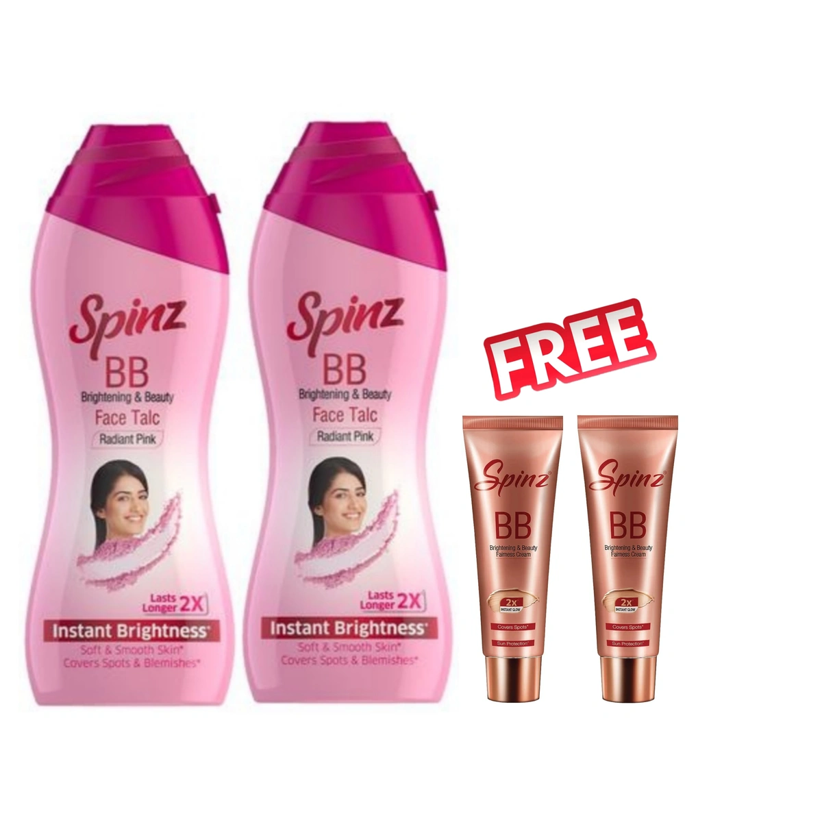 Spinz Brightening and Beauty Radiant Pink Face Talcum Powder, 80g With Spinz BB Cream 9g ( Pack Of 2 )