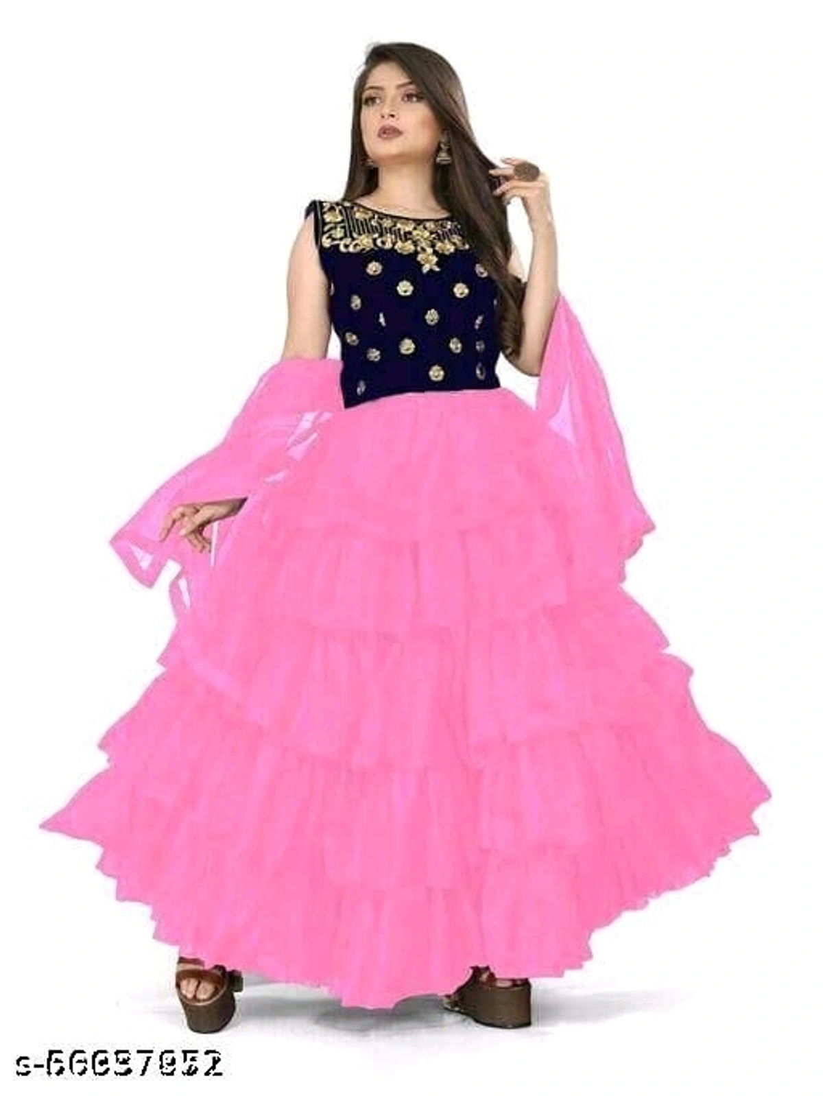 Name: Stylish soft Net & Velvet Embroidery fency design long gowns & dupatta Pink