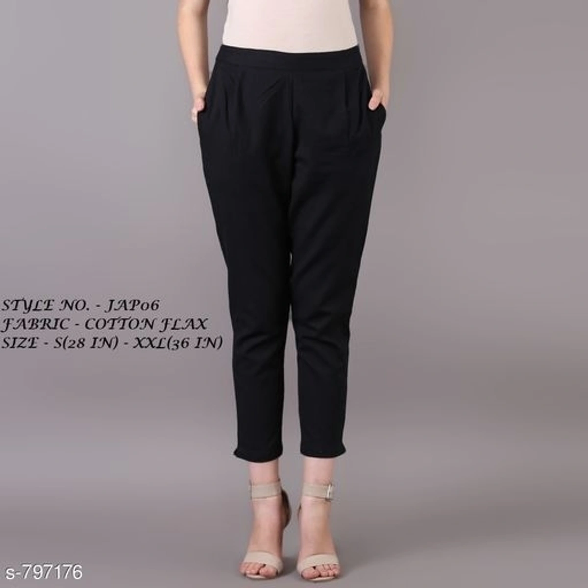 Stylish Solid Women's Pant Name: Stylish Solid Women's Pant Fabric: Cotton Flax Size: Waist: S - 28 in M - 30 in L - 32 in XL - 34 in XXL - 36 in Length: Up To 37 in Type: Stitched Description: It Has 1 Piece Of Women's Pant Pattern: Solid Country of Origin: India
