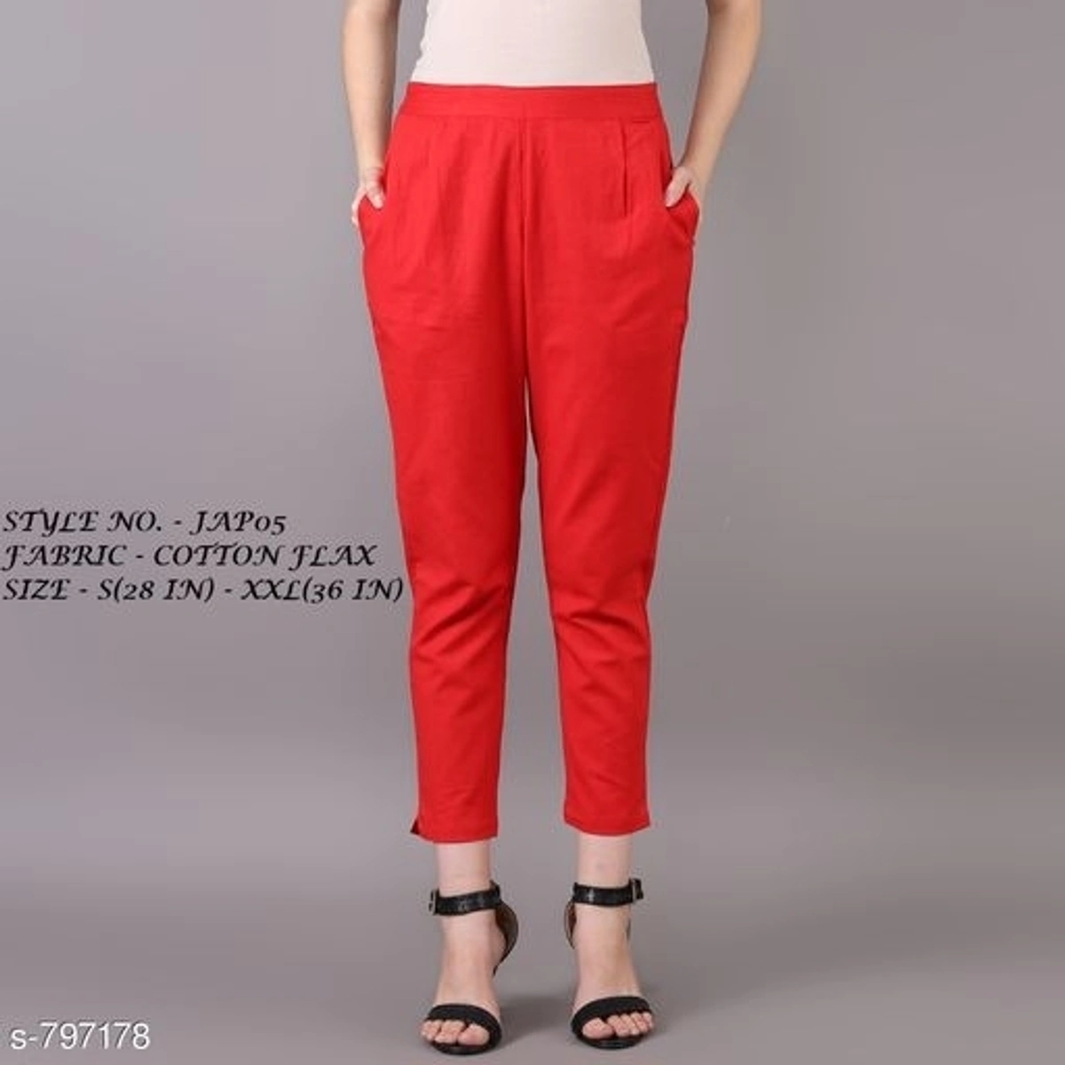 Stylish Solid Women's Pant Name: Stylish Solid Women's Pant Fabric: Cotton Flax Size: Waist: S - 28 in M - 30 in L - 32 in XL - 34 in XXL - 36 in Length: Up To 37 in Type: Stitched Description: It Has 1 Piece Of Women's Pant Pattern: Solid Country of Origin: India