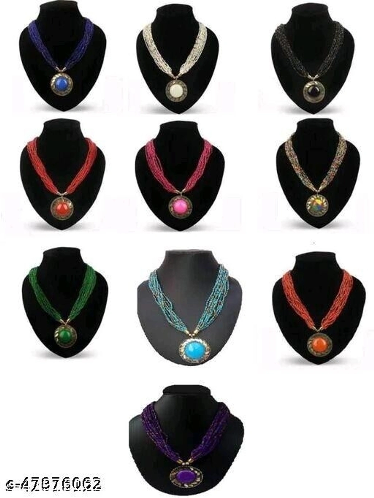Stylish Women's and Girl's 10 Pcs Set Combo Beads Brass Necklace
