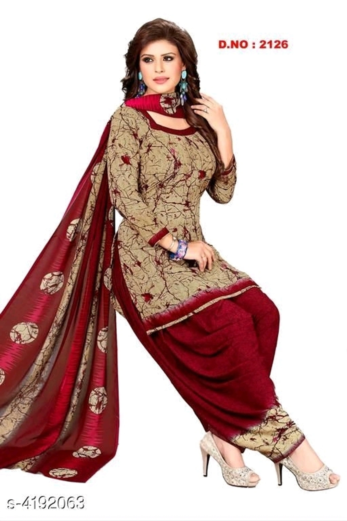 Stylish Women's Suits & Dress Materials Name: Stylish Women's Suits & Dress Materials Top Fabric: Crepe + Top Length: 0-2.00 Mtr Bottom Fabric: Crepe + Bottom Length: 0-2.00 Mtr Dupatta Fabric: Chiffon + Dupatta Length: 0-2.00 Mtr Type: Pattern: Printed Multipack: Single Country of Origin: India free and fast delivery return policy 6 days