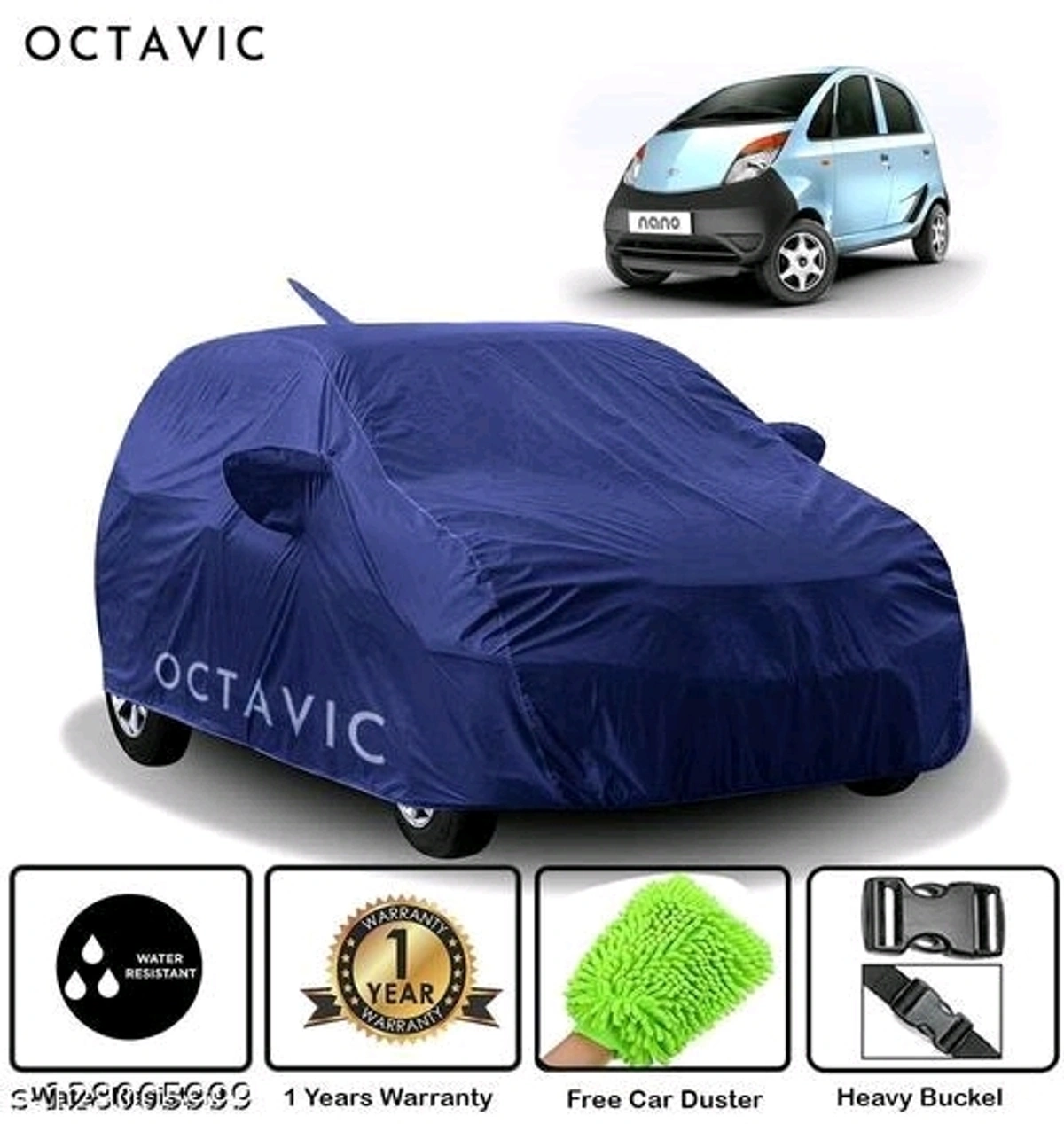 Name: Tata Nano Navy Blue Tata Nano Car Cover with Mirror Pocket - Water Resistant Fabric - SunProof - Heavy Buckle (Red Stripe )