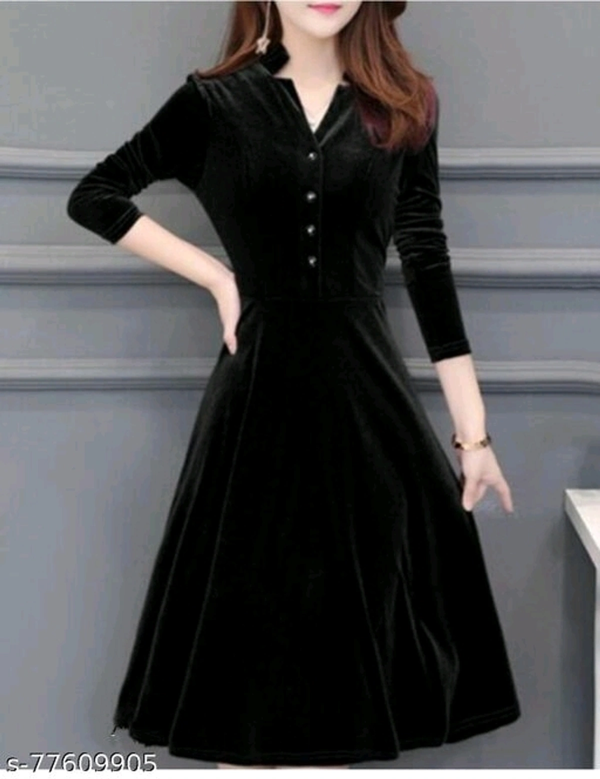 TB_1100_VELVET DRESS_BLACK Name: TB_1100_VELVET DRESS_BLACK Fabric: Velvet Sleeve Length: Three-Quarter Sleeves Multipack: 1 Sizes: S (Bust Size: 36 in, Length Size: 42 in) XL (Bust Size: 42 in, Length Size: 42 in) XS (Bust Size: 34 in, Length Size: 42 in) L (Bust Size: 40 in, Length Size: 42 in) M (Bust Size: 38 in, Length Size: 42 in) XXL (Bust Size: 44 in, Length Size: 42 in) free and fast delivery return policy 6 days