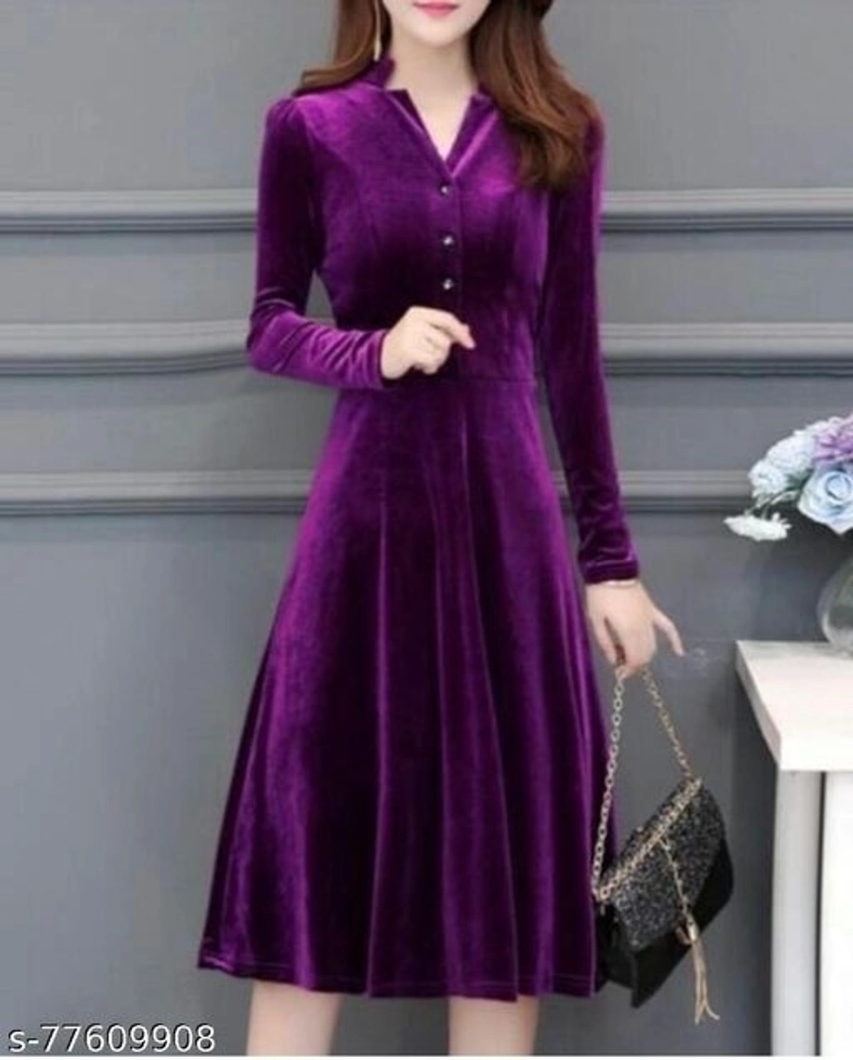 TB_1100_VELVET DRESS_WINE Name: TB_1100_VELVET DRESS_WINE Fabric: Velvet Sleeve Length: Three-Quarter Sleeves Multipack: 1 Sizes: S (Bust Size: 36 in, Length Size: 42 in) XL (Bust Size: 42 in, Length Size: 42 in) XS (Bust Size: 34 in, Length Size: 42 in) L (Bust Size: 40 in, Length Size: 42 in) M (Bust Size: 38 in, Length Size: 42 in) XXL (Bust Size: 44 in, Length Size: 42 in) free and fast delivery return policy 6 days