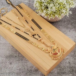 Traditional Necklace Pendant Gold Plated Hand Meena 30inch Long and 18inch short Combo Of 3 Mangalsutra/Tanmaniya/nallapusalu/Black Beads For Women and Girls Brass, Alloy Mangalsutra