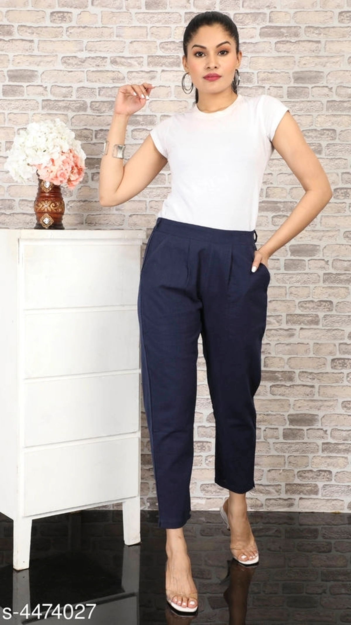 Trendy Cotton Trousers Name: Trendy Cotton Trousers Fabric: Cotton Size: S - 28 in M - 30 in L - 32 in XL - 34 in XXL -36 in Length: Up To 37 in Type: Stitched Description: It Has 1 Piece Of Trouser Pattern: Solid Country of Origin: India