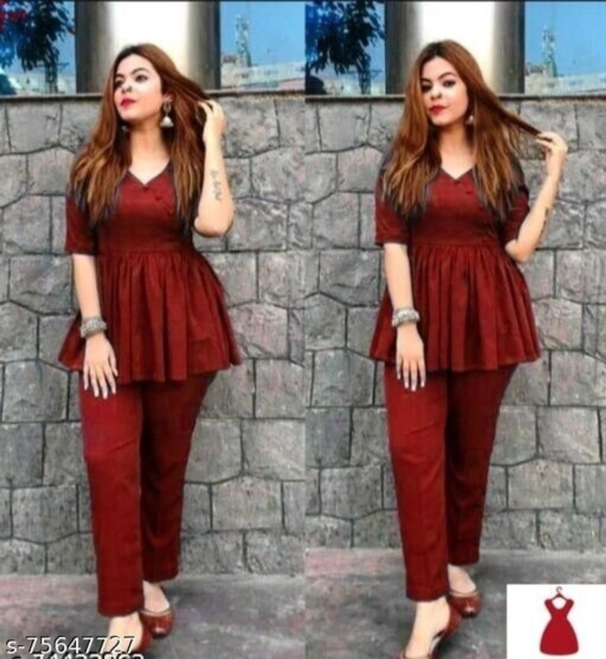 Name: Trendy Fashionable Maroon Top With Pant