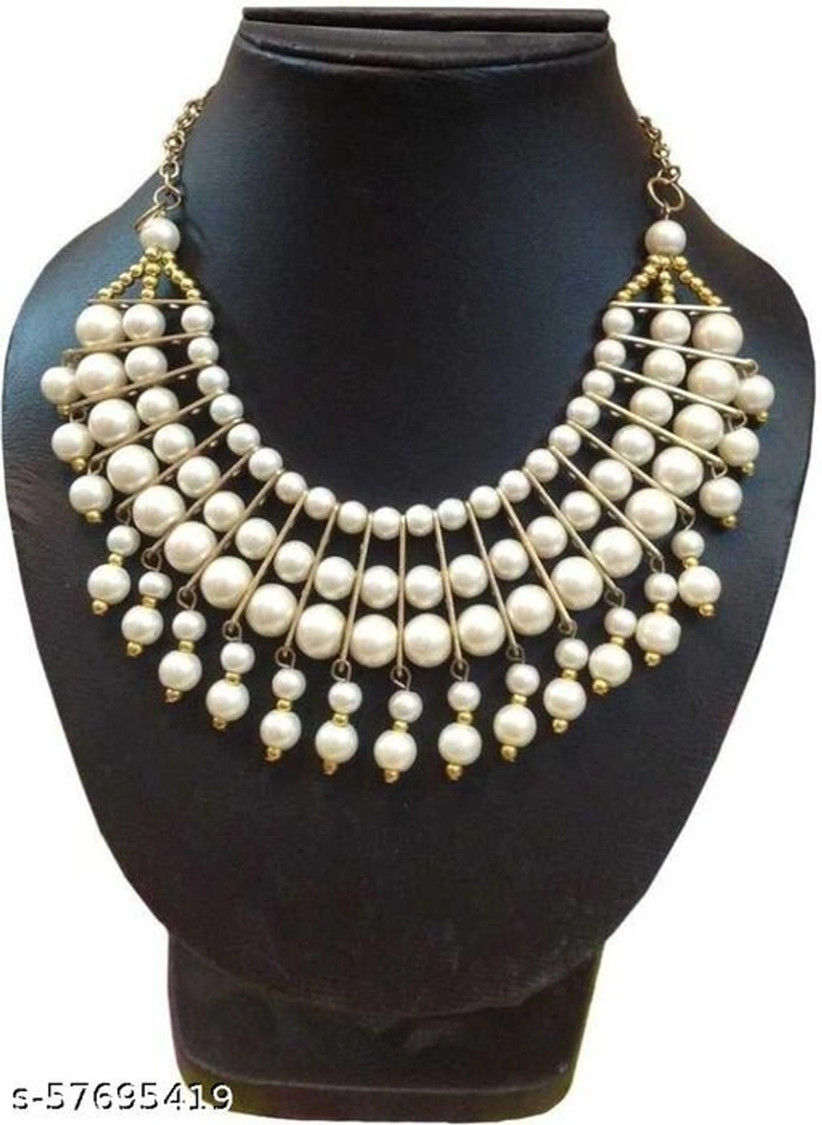 Name: Trendy Gold and White Pearl Handicraft Necklace