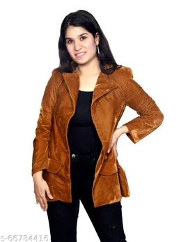 Women's Mustard Solid Regular Jackets Name: Women's Mustard Solid Regular Jackets Fabric: Velvet Sleeve Length: Long Sleeves Pattern: Solid Multipack: 1 Sizes: S (Bust Size: 34 in, Length Size: 23 in) M (Bust Size: 36 in, Length Size: 23 in) L (Bust Size: 38 in, Length Size: 23 in) Country of Origin: India