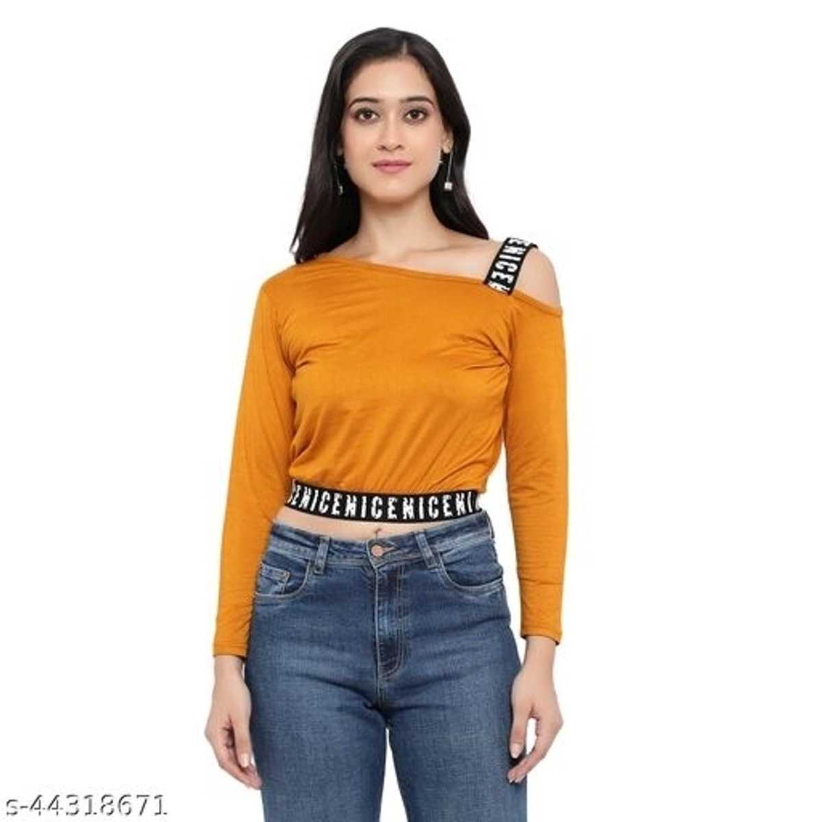 Trendy Retro Women Tops Name: Trendy Retro Women Tops Fabric: Lycra Sleeve Length: Long Sleeves Pattern: Self-Design Multipack: 1 Sizes: S (Bust Size: 28 in, Length Size: 17 in) L (Bust Size: 32 in, Length Size: 17 in) M (Bust Size: 30 in, Length Size: 17 in) Its a one side cold shoulder trendy top, Its a comfy fabric for summer and best for casual outing. with a stretchable elastic on shoulder and bottom make this top different from others. Country of Origin: India free delivery return policy 6 days