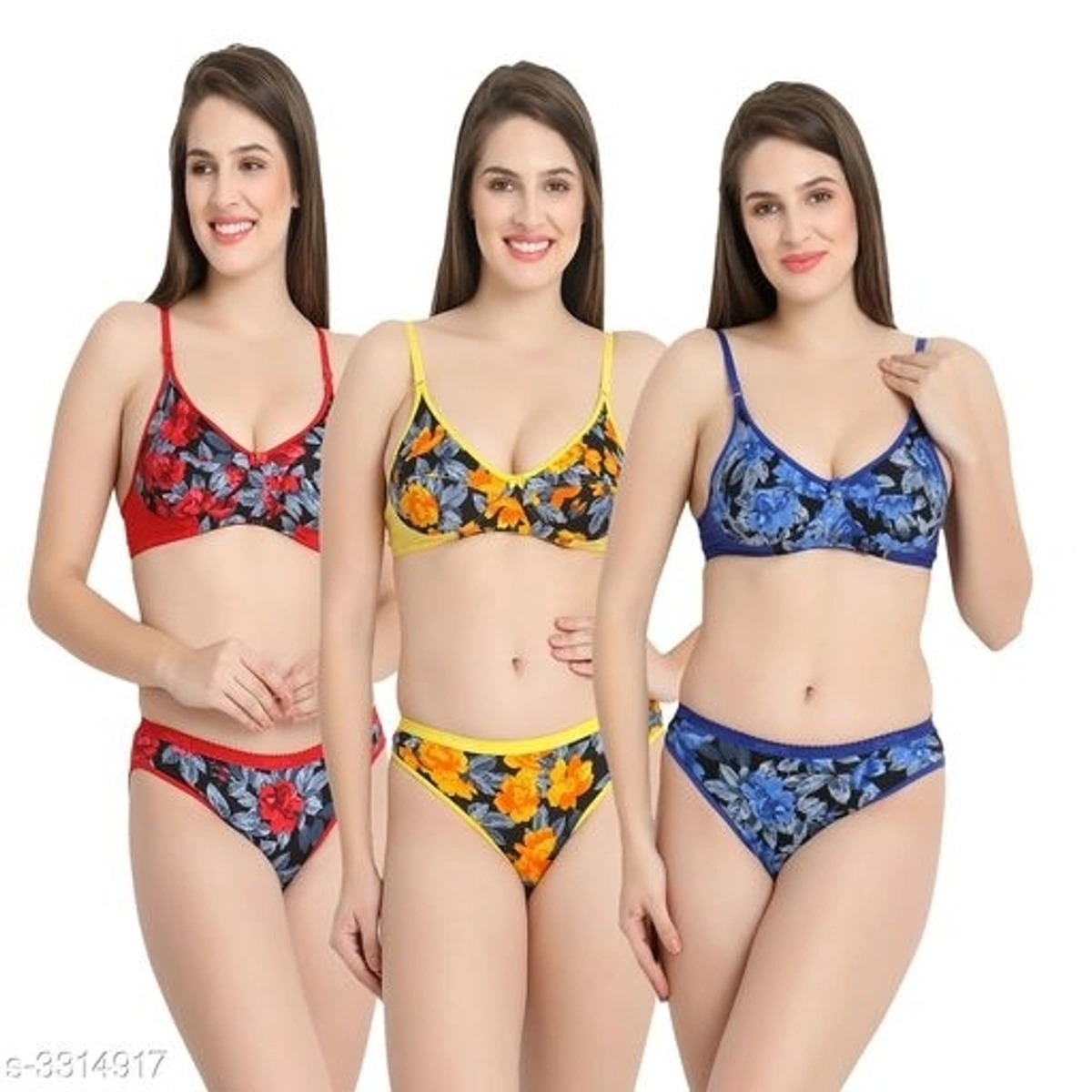 Trendy Women's Lingerie Sets Name: Trendy Women's Lingerie Sets Fabric: Cotton Sleeves: Sleeves Are Not Included Size: 30B: Cup Size - Underbust - 25 in To 26 in Overbust - 31 in To 32 in Waist - 28 in Hip - 34 in 32B: Cup Size - Underbust - 27 in To 28 in Overbust - 33 in To 34 in Waist - 31 in Hip - 36 in 34B: Cup Size - Underbust - 29 in To 30 in Overbust - 35 in To 36 in Waist - 33 in Hip - 38 in 36B: Cup Size - Underbust - 31 in To 32 in Overbust - 37 in To 38 in Waist - 37 in Hip - 40 in Type: Stitched Color: Multi-Color Description: It Has 3 Pieces Of Bras & 3 Pieces Of Panties Work: Printed Country of Origin: India Free and fast delivery Easy Returns Available In Case Of Any Issue return policy 6 Days
