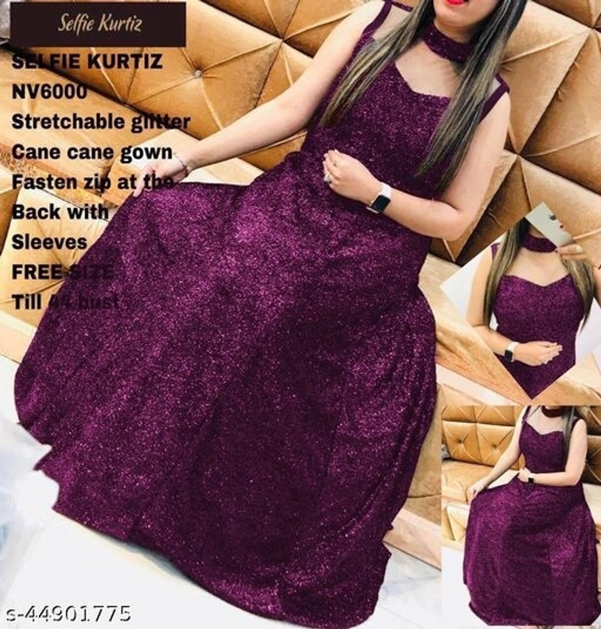 Urbane Sensational Women Gowns Name: Urbane Sensational Women Gowns Fabric: Chiffon Sleeve Length: Sleeveless Pattern: Solid Multipack: 1 Sizes: XL (Bust Size: 42 in, Length Size: 55 in) L (Bust Size: 40 in, Length Size: 55 in) XXL (Bust Size: 44 in, Length Size: 55 in) M (Bust Size: 38 in, Length Size: 55 in) S (Bust Size: 36 in, Length Size: 55 in) XXXL (Bust Size: 46 in, Length Size: 55 in) Fabric : Lycra Fancy Korean With Included Sleeves Country of Origin: India Free and fast delivery Easy Returns Available In Case Of Any Issue return policy 6 Days