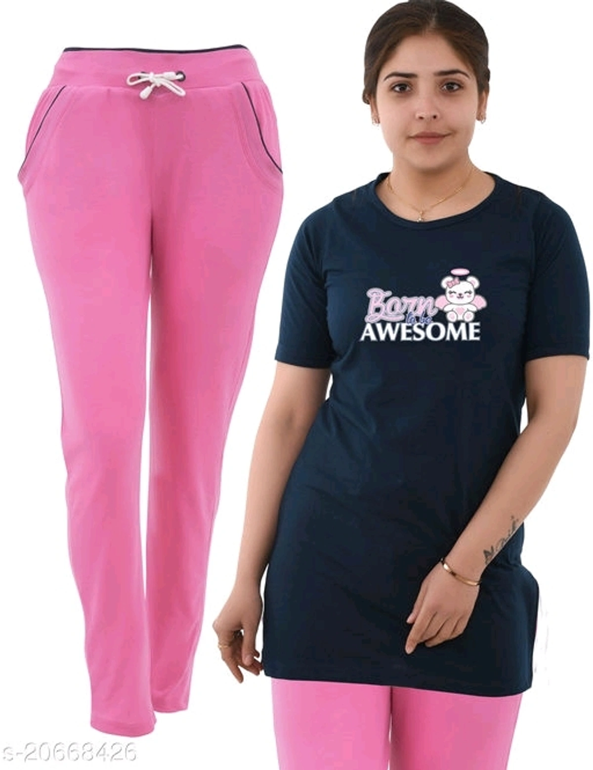 Urbe Cotton Tshirt and lower set Name: Urbe Cotton Tshirt and lower set Top Fabric: Cotton Bottom Fabric: Cotton Top Type: Tshirt Bottom Type: Pyjamas Sleeve Length: Short Sleeves Pattern: Self-Design Multipack: 1 Sizes: XL (Top Bust Size: 38 in, Top Length Size: 31 in, Bottom Waist Size: 32 in, Bottom Length Size: 38 in) L (Top Bust Size: 36 in, Top Length Size: 30 in, Bottom Waist Size: 30 in, Bottom Length Size: 37 in) M (Top Bust Size: 34 in, Top Length Size: 30 in, Bottom Waist Size: 28 in, Bottom Length Size: 36 in) XXL (Top Bust Size: 40 in, Top Length Size: 31 in, Bottom Waist Size: 34 in, Bottom Length Size: 38 in) XXXL (Top Bust Size: 42 in, Top Length Size: 32 in, Bottom Waist Size: 36 in, Bottom Length Size: 39 in) Country of Origin: India