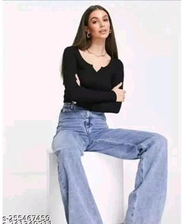 Name: V-Neck Cut Designer TOP & Tunics for Women and Girls Ribbed Lycra Material Full Sleeves V Neck Cut TOP TRENDI Look TOP