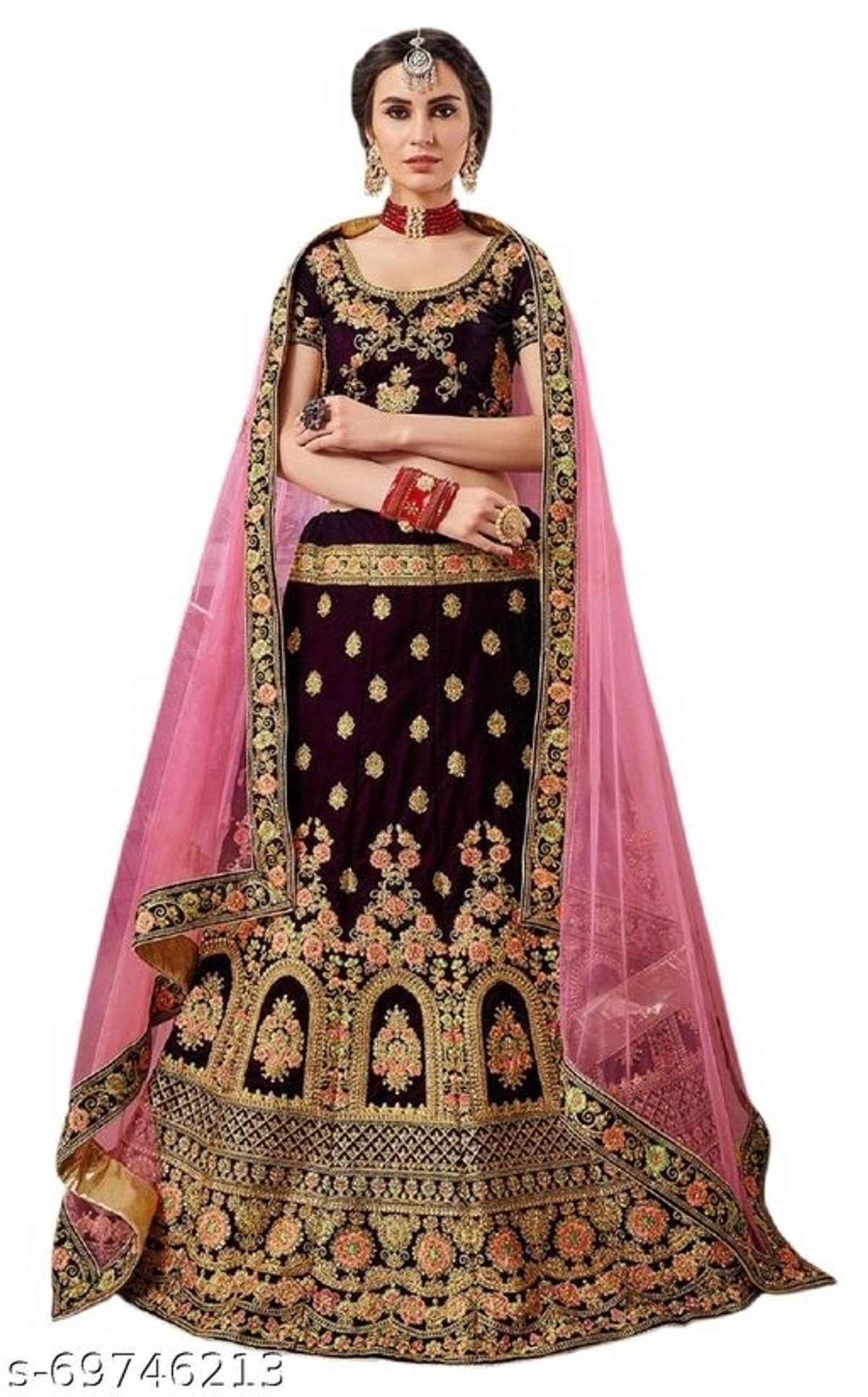 Wedding New Stylish Velvet Lehenga Choli Full set Name: Wedding New Stylish Velvet Lehenga Choli Full set Topwear Fabric: Velvet Bottomwear Fabric: Velvet Dupatta Fabric: Net Set type: Choli And Dupatta Top Print or Pattern Type: Embroidered Bottom Print or Pattern Type: Embroidered Dupatta Print or Pattern Type: Embroidered Sizes: Semi Stitched (Lehenga Waist Size: 42 m, Lehenga Length Size: 44 m, Duppatta Length Size: 2.25 m) Free Size (Lehenga Waist Size: 42 in, Lehenga Length Size: 44 in, Duppatta Length Size: 2.25 in) Country of Origin: India
