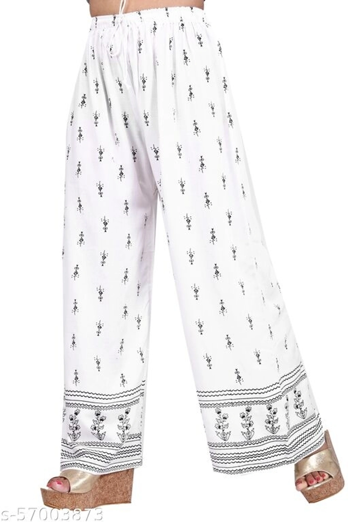 Western woman palazzos Name: Western woman palazzos Fabric: Rayon Pattern: Printed Multipack: 2 Sizes: 28, 30, 32, 34, 36, 38, 40, 42, 44, 46, Free Size (Waist Size: 46 in, Length Size: 40 in) Country of Origin: India