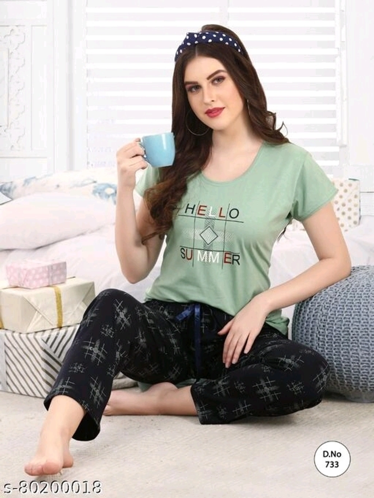 Womans Nightsuit & Loungewear Name: Womans Nightsuit & Loungewear Top Fabric: Hosiery Bottom Fabric: Hosiery Top Type: Tshirt Bottom Type: Pyjamas Sleeve Length: Short Sleeves Pattern: Printed Multipack: 1 Sizes: S (Top Bust Size: 36 in, Top Length Size: 25 in, Bottom Waist Size: 23 in, Bottom Length Size: 38 in) XL (Top Bust Size: 42 in, Top Length Size: 28 in, Bottom Waist Size: 26 in, Bottom Length Size: 41 in) L (Top Bust Size: 40 in, Top Length Size: 27 in, Bottom Waist Size: 25 in, Bottom Length Size: 40 in) M (Top Bust Size: 38 in, Top Length Size: 26 in, Bottom Waist Size: 24 in, Bottom Length Size: 39 in) XXL (Top Bust Size: 44 in, Top Length Size: 29 in, Bottom Waist Size: 27 in, Bottom Length Size: 42 in) Soft & Comfort Hosiery Cotton For Womans & Girls