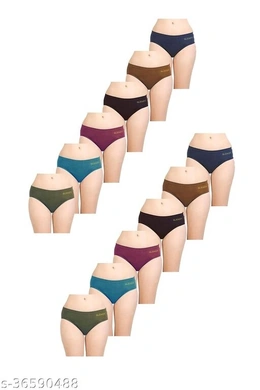 Women Hipster Multicolor Cotton Panty (Pack of 12) Name: Women Hipster Multicolor Cotton Panty (Pack of 12) Fabric: Cotton Pattern: Solid Multipack: 12 Sizes: S (Waist Size: 30 in) XL (Waist Size: 36 in) XS (Waist Size: 28 in) L (Waist Size: 34 in) XXL (Waist Size: 38 in) M (Waist Size: 32 in) XXXL (Waist Size: 40 in) Country of Origin: India Free and fast delivery Easy Returns Available In Case Of Any Issue return policy 6 Days