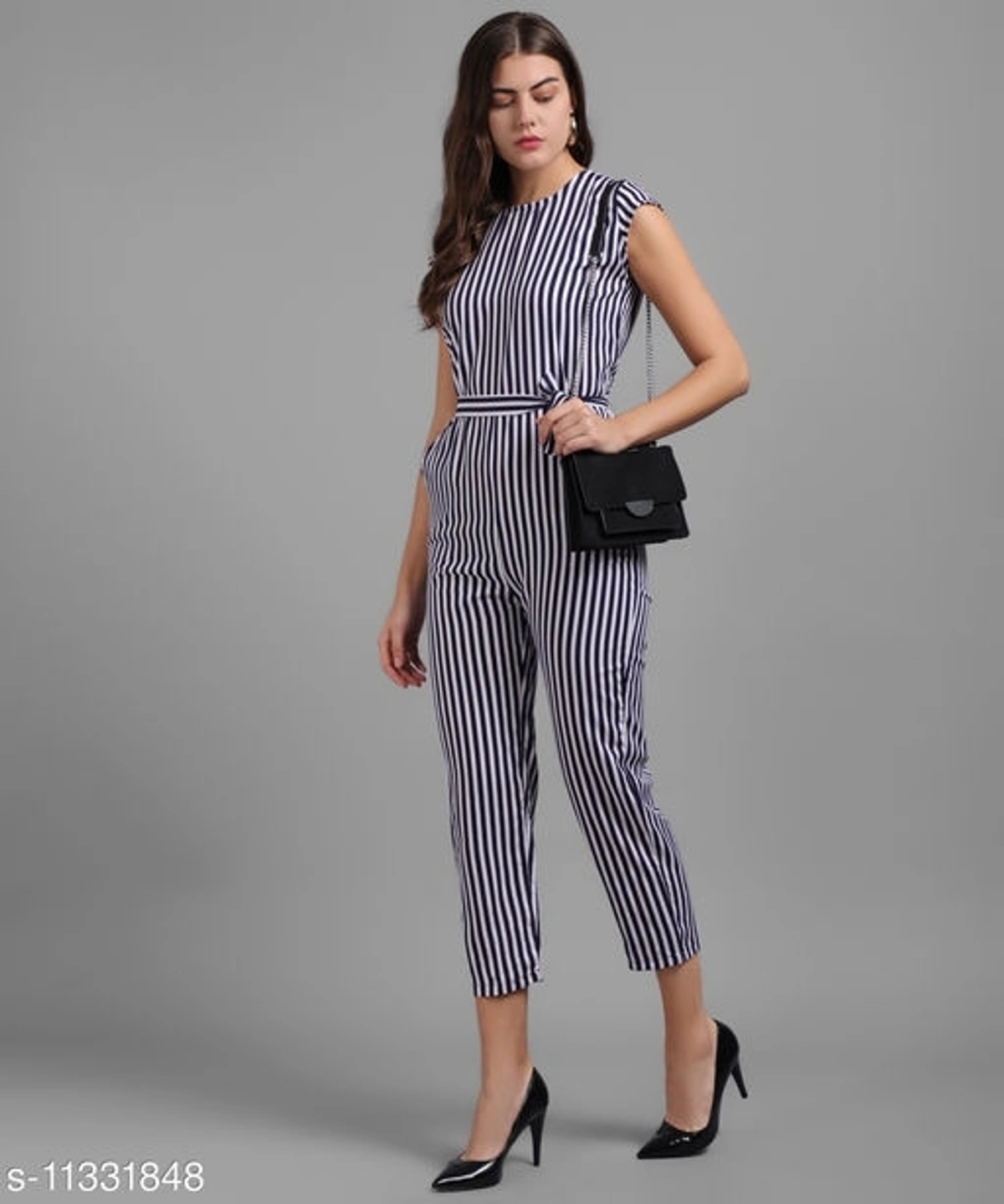 Women Nevy Blue Small Stripe Printed Front Knot Jumpsuits Name: Women Nevy Blue Small Stripe Printed Front Knot Jumpsuits Fabric: Crepe Sleeve Length: Short Sleeves Pattern: Printed Multipack: 1 Sizes: S (Bust Size: 36 in, Length Size: 48 in, Waist Size: 36 in) M (Bust Size: 38 in, Length Size: 48 in, Waist Size: 38 in) L (Bust Size: 40 in, Length Size: 48 in, Waist Size: 40 in) XL (Bust Size: 42 in, Length Size: 48 in, Waist Size: 42 in) Country of Origin: India
