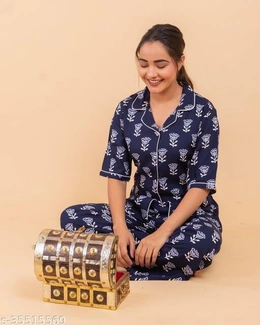 Super quality Rayon flower printed fabric, night wear shirt style top and pyzama set for girls and women