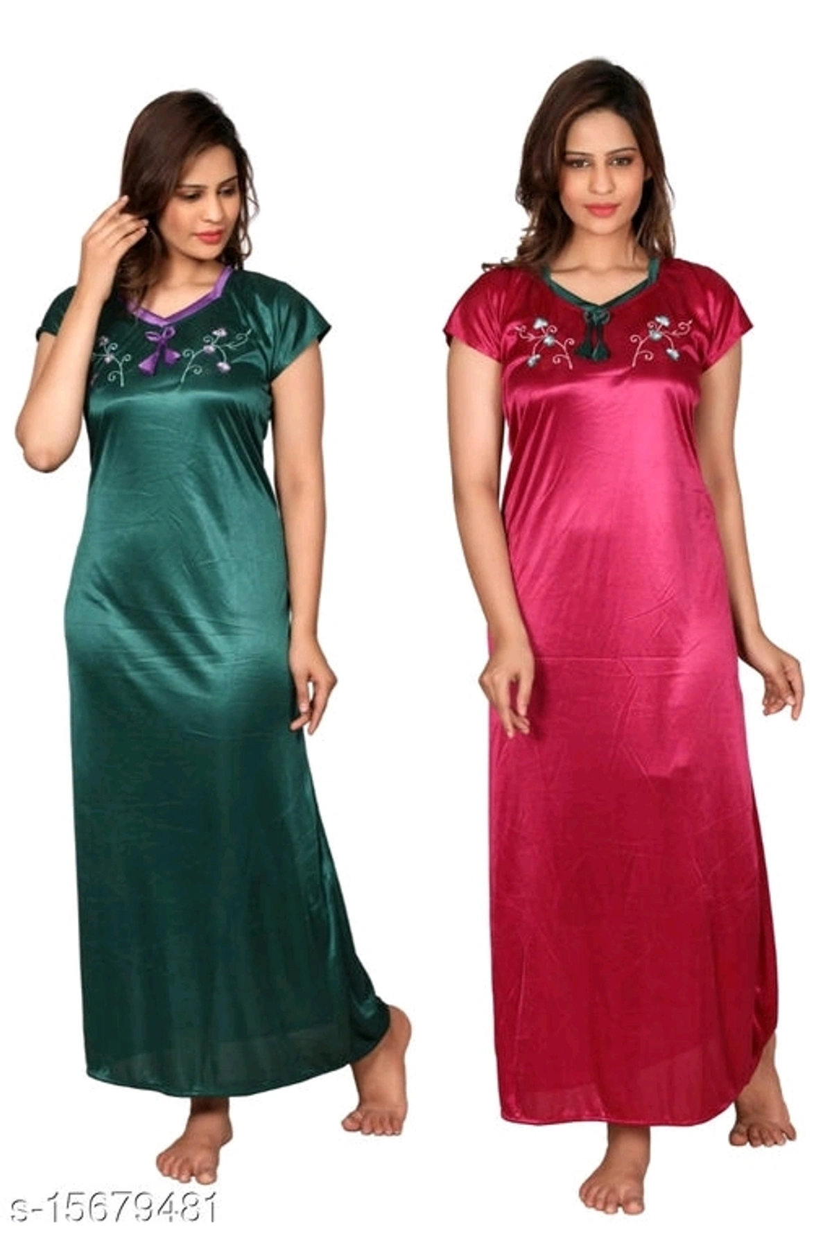 Women Pack of 2 Solid Nightdress Name: Women Pack of 2 Solid Nightdress Fabric: Satin Sleeve Length: Short Sleeves Pattern: Solid Multipack: 2 Sizes: (Bust Size: Free Size, Length Size: 53 in) Country of Origin: India