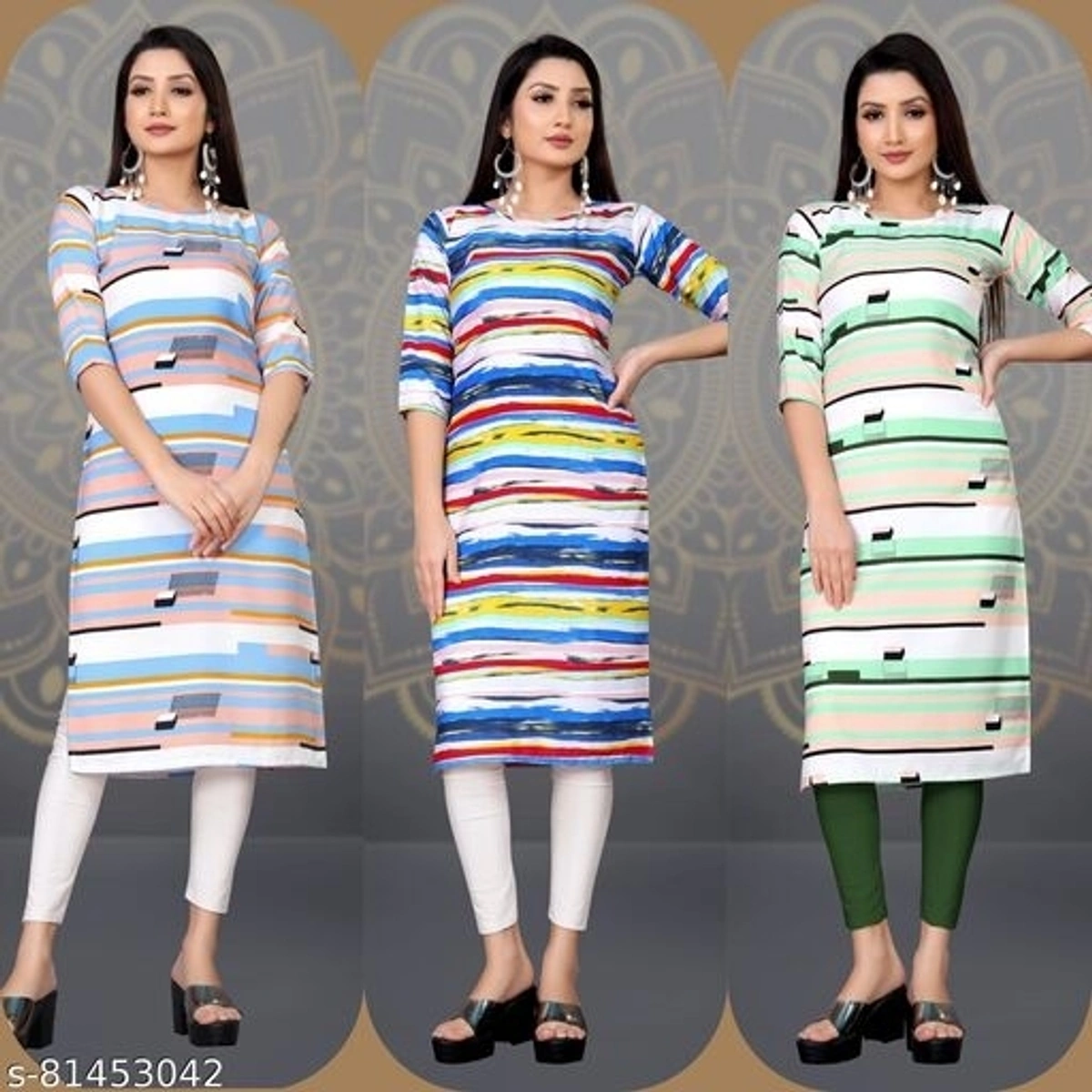 Women Printed A-Line Straight Kurta 3 Piece Combo