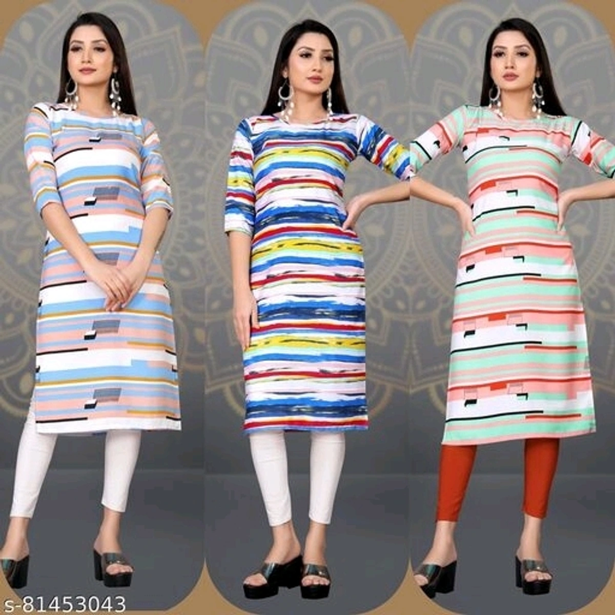 Women Printed A-Line Straight Kurta 3 Piece Combo
