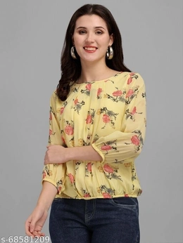 WOMEN TOP & TUNICS Name: WOMEN TOP & TUNICS Fabric: Polyester Sizes: S (Bust Size: 35 in) XL (Bust Size: 41 in) L (Bust Size: 39 in) M (Bust Size: 37 in) Country of Origin: India free delivery return policy 6 days