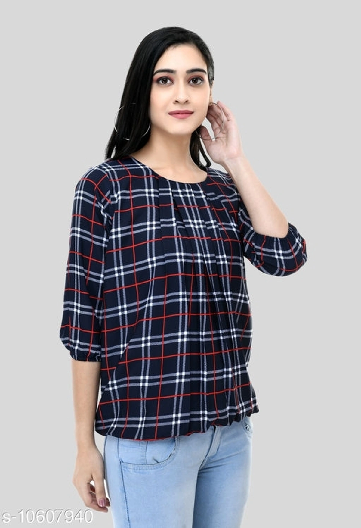 Women's Beautifull Trendy Printed Top Name: Women's Beautifull Trendy Printed Top Fabric: Poly Crepe Sleeve Length: Three-Quarter Sleeves Pattern: Checked Multipack: 1 Sizes: XXL (Bust Size: 42 in Length Size: 26 in) Country of Origin: India free delivery return policy 6 days