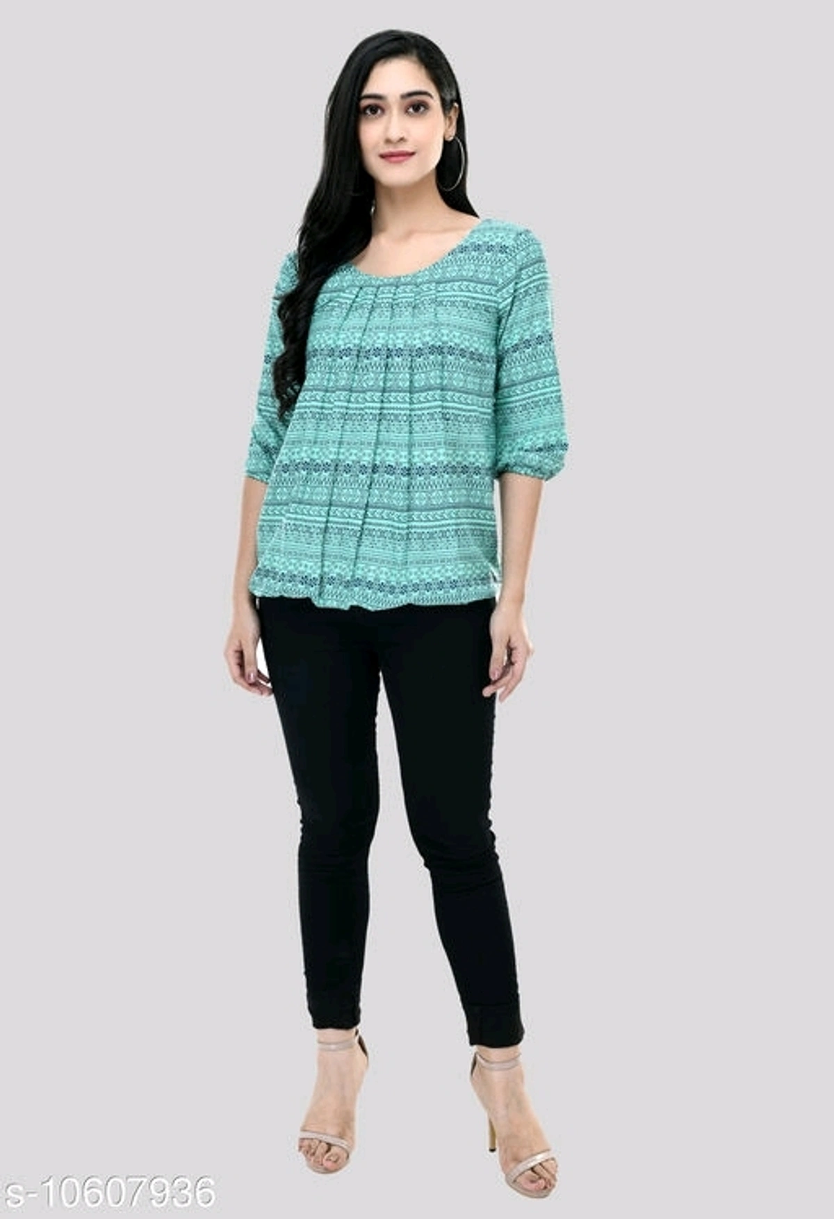 Women's Beautifull Trendy Printed Top Name: Women's Beautifull Trendy Printed Top Fabric: Poly Crepe Sleeve Length: Three-Quarter Sleeves Pattern: Printed Multipack: 1 Sizes: M (Bust Size: 36 in Length Size: 26 in) Country of Origin: India free delivery return policy 6 days