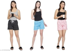 Women's Cotton Printed Shorts - Pack of 3 Name: Women's Cotton Printed Shorts - Pack of 3 Fabric: Cotton Pattern: Printed Multipack: 3 Sizes: 30 (Waist Size: 30 in, Length Size: 13 in, Hip Size: 36 in) 32 (Waist Size: 32 in, Length Size: 14 in, Hip Size: 38 in) 34 (Waist Size: 34 in, Length Size: 15 in, Hip Size: 40 in) 36 (Waist Size: 36 in, Length Size: 16 in, Hip Size: 42 in) Country of Origin: India