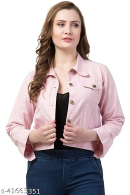 Women's Denim Jean Jacket Authentics womens Stretch Denim Pink Color Name: Women's Denim Jean Jacket Authentics womens Stretch Denim Pink Color Sizes: S (Bust Size: 34 in, Length Size: 19 in, Waist Size: 36 in, Hip Size: 38 in, Shoulder Size: 15 in) M (Bust Size: 36 in, Length Size: 20 in, Waist Size: 38 in, Hip Size: 40 in, Shoulder Size: 16 in) L (Bust Size: 38 in, Length Size: 21 in, Waist Size: 40 in, Hip Size: 42 in, Shoulder Size: 17 in) XL (Bust Size: 40 in, Length Size: 22 in, Waist Size: 42 in, Hip Size: 44 in, Shoulder Size: 18 in) Country of Origin: India