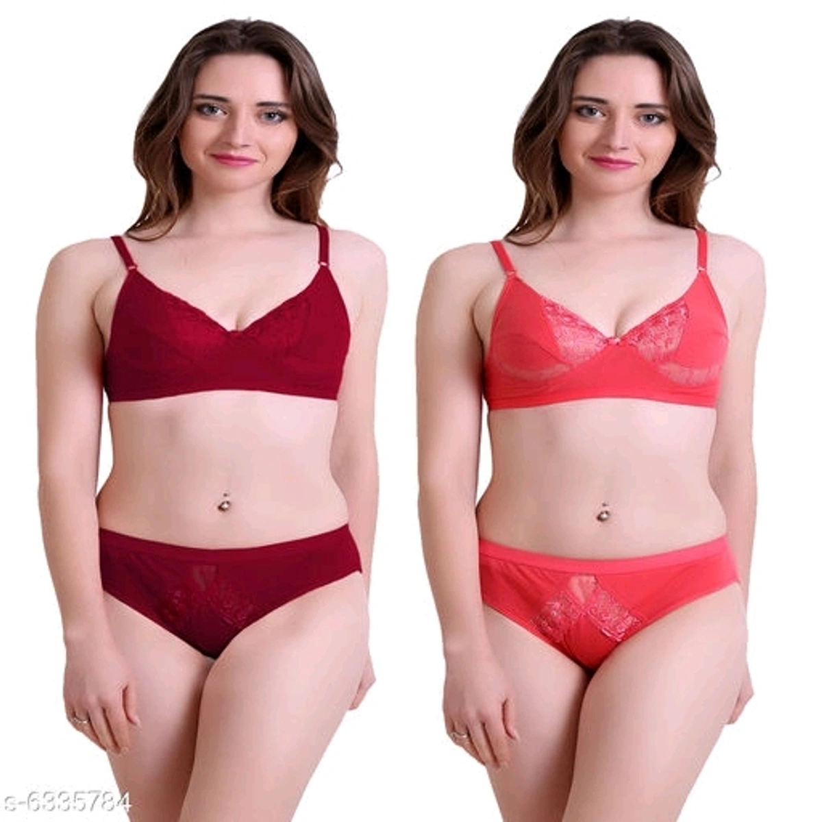 Women's Lace Cotton Lingerie Sets Name: Women's Lace Cotton Lingerie Sets Top Fabric: Cotton Bottom Fabric: Cotton Multipack: 2 Sizes: 34B (Underbust Size: 29 in Overbust Size: 35 in Bottom Waist Size: 34 in) 32B (Underbust Size: 27 in Overbust Size: 33 in Bottom Waist Size: 32 in) 30B (Underbust Size: 25 in Overbust Size: 31 in Bottom Waist Size: 30 in) 36B (Underbust Size: 31 in Overbust Size: 37 in Bottom Waist Size: 36 in) Country of Origin: India Free and fast delivery Easy Returns Available In Case Of Any Issue return policy 6 Days