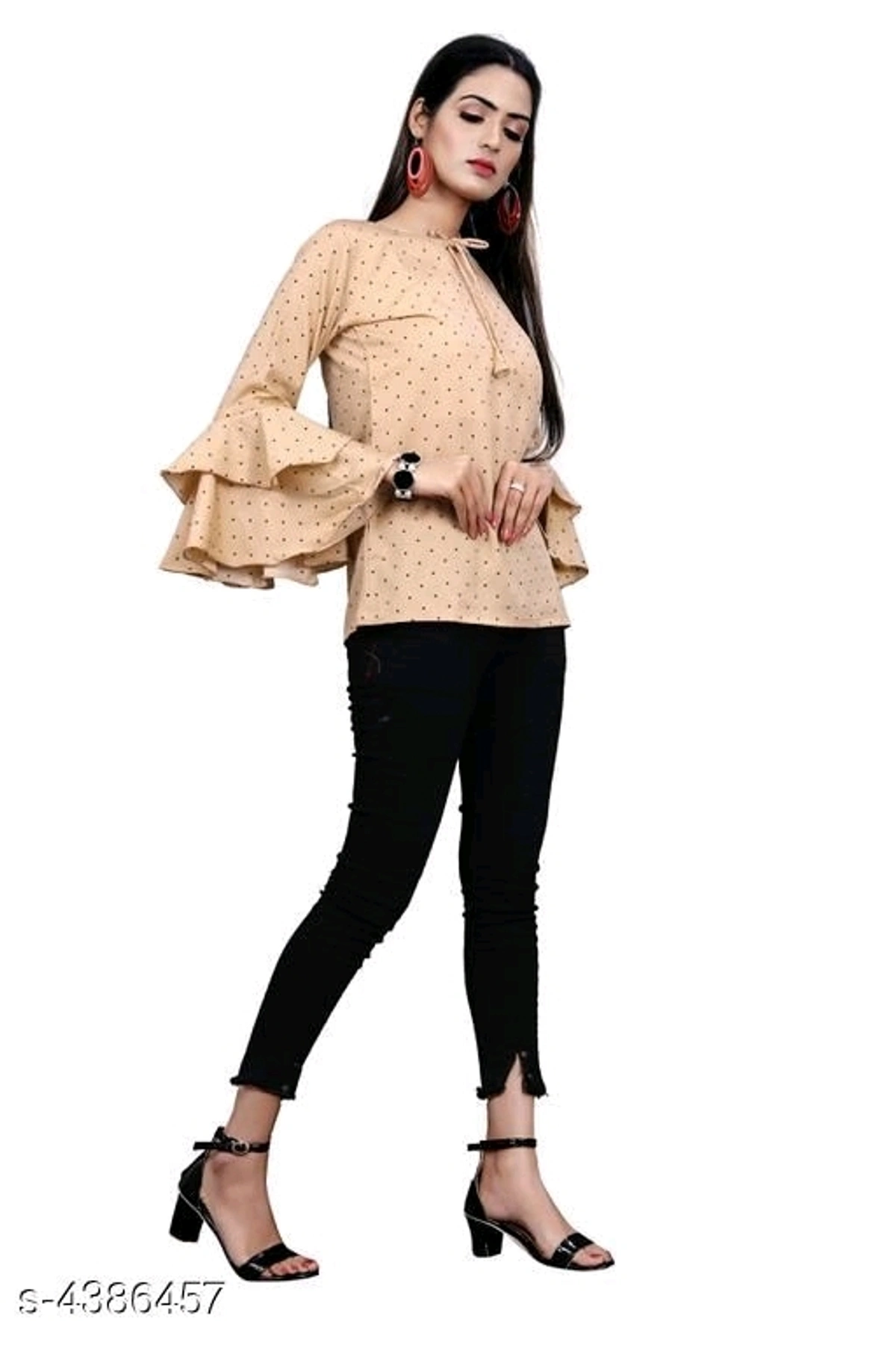 Name: Women's Printed Beige Crepe Top