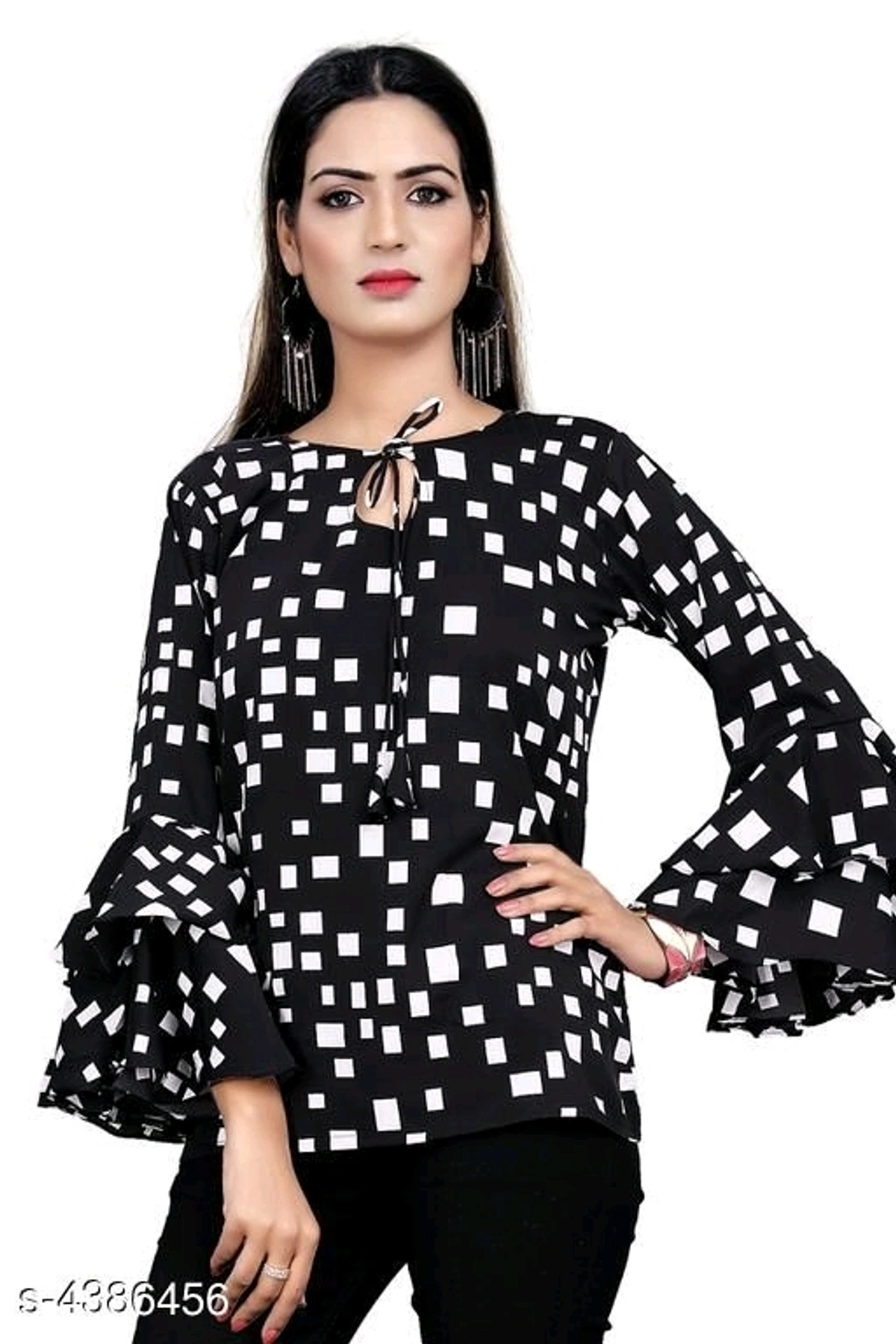 Women's Printed Black Crepe Top Name: Women's Printed Black Crepe Top Fabric: Crepe Sleeve Length: Three-Quarter Sleeves Pattern: Printed Multipack: 1 Sizes: S (Bust Size: 36 in Length Size: 28 in) XL (Bust Size: 42 in Length Size: 28 in) L (Bust Size: 40 in Length Size: 28 in) M (Bust Size: 38 in Length Size: 28 in) XXL (Bust Size: 44 in Length Size: 28 in) Country of Origin: India Free delivery return policy 6 days