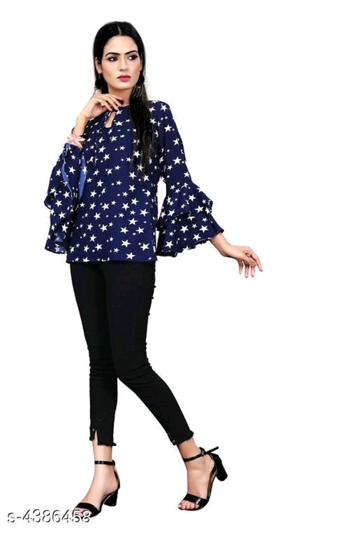 Women's Printed Navy Blue Crepe Top Name: Women's Printed Navy Blue Crepe Top Fabric: Crepe Sleeve Length: Three-Quarter Sleeves Pattern: Printed Multipack: 1 Sizes: S (Bust Size: 36 in Length Size: 28 in) XL (Bust Size: 42 in Length Size: 28 in) L (Bust Size: 40 in Length Size: 28 in) M (Bust Size: 38 in Length Size: 28 in) XXL (Bust Size: 44 in Length Size: 28 in) Country of Origin: India free delivery in return policy 6 days