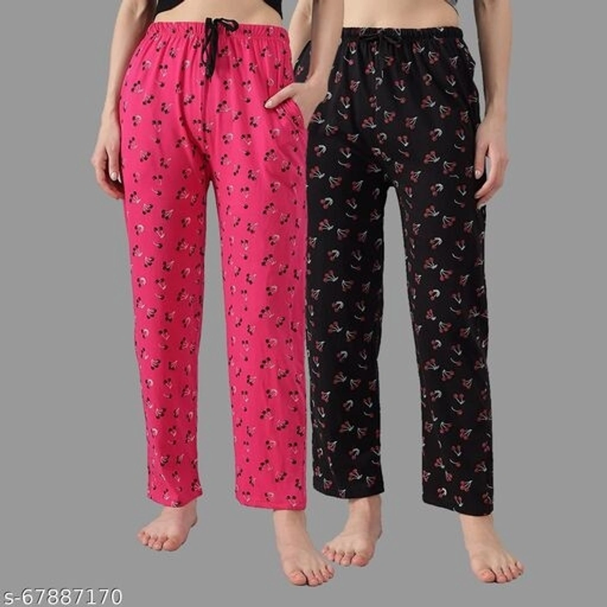Name: Women's Regular Fit Comfortable Cotton Pyjama Night Wear Lounge paint Printed Pyjama/Lounge Paint/Pyjami For Women & Girls (Pack Of 2)